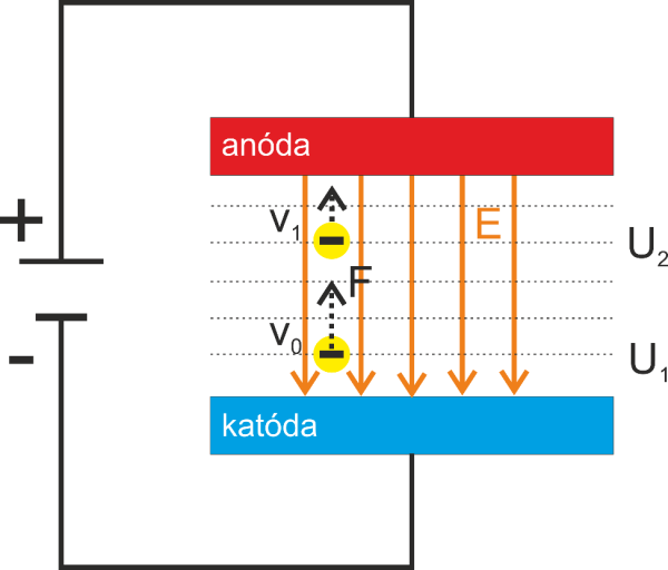 Dosadením hodnôt pre náboj elekrónu e a jeho hmotnosť m do vzťahu (9.5) je možné vypočítať približnú rýchlosť elektrónu [6]: