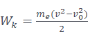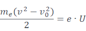 kde me je hmotnosť elektrónu, v a v0 sú rýchlosti pohybu elektrónov v bodoch 1 a 2.