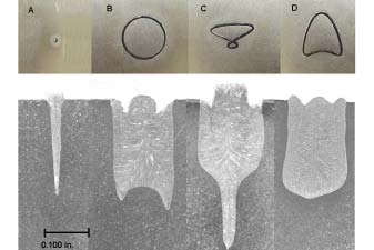 Zváranie zliatin s nízkou teplotou tavenia, ako je hliník alebo horčík a ich zliatin môže byť často výzvou, pretože koncentrácia vysokého výkonu lúča môže jednoducho prehriať materiál, čo môže mať za následok pórovitosť, nepravidelnú kresbu zvarovej húsenice a vznik rozstreku. Dynamické vychyľovanie lúča (obr. 9.14) po dráhe naprogramovaného tvaru s frekvenciou niekoľko stoviek hertzov a nastavenie ďalších hodnôt vychýlenia pomáha znižovať hustotu výkonu v mieste dopadu lúča na zváraný materiál, a tým zabraňuje prehrievaniu zliatiny. Pórovitosť je tak možné minimalizovať alebo sa jej úplne vyhnúť, kresbu možno vyhladiť a vo väčšine prípadov eliminovať tvorbu rozstreku [10].