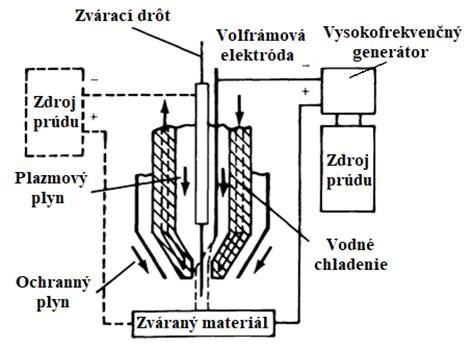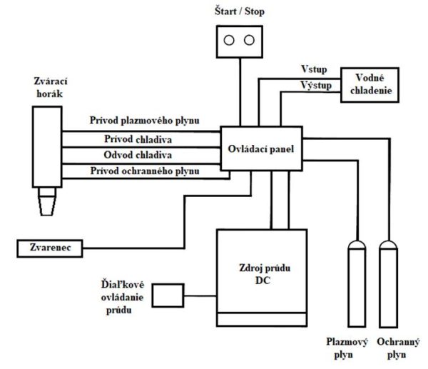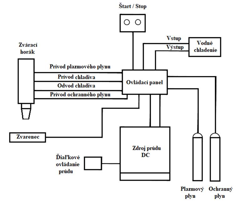 Obr. 10.3 Schéma zapojenia zariadenia na zváranie plazmou [7]
