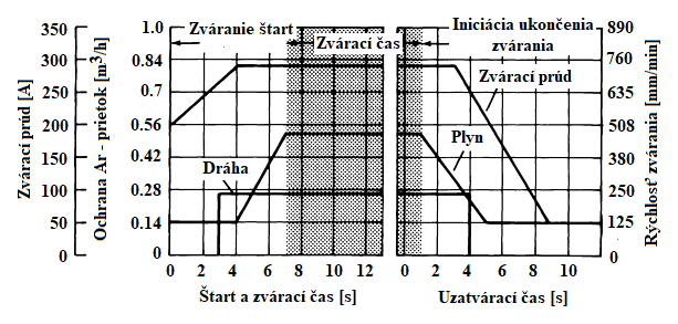 Pri ukončení procesu zvárania kľúčovou dierkou je nevyhnutné znížiť zvárací prúd a súčasne prietok plazmových plynov, čo je prezentované aj na obr. 10.8.