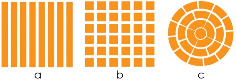 a – lineárne, b – štvorcové-maticové, c – segmentové [5]