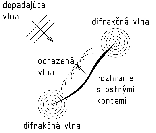• difrakčná vlna šíriaca sa z ostrých okrajov chyby,