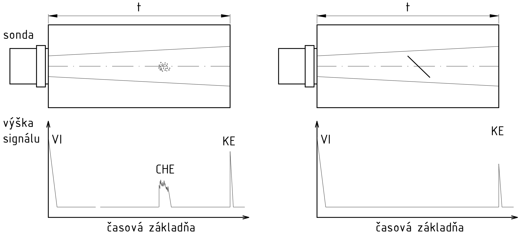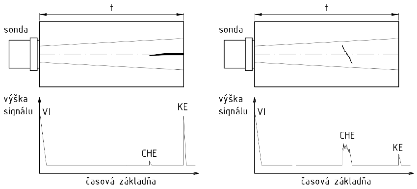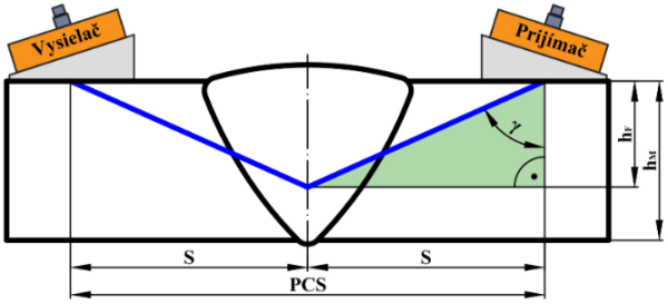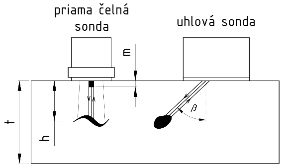 t – hrúbka materiálu, h – vzdialenosť k chybe