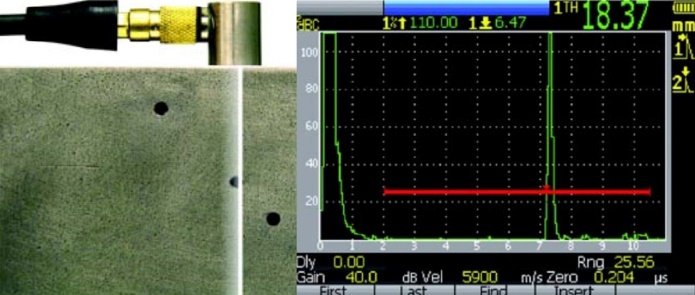 Prístroje na ultrazvukové skúšanie sa používajú v priemyselných oblastiach už viac ako osemdesiat rokov. Prvé práce v Európe a v Spojených štátoch, publikované v tridsiatych rokoch dvadsiateho storočia, preukázali, že zvukové vlny s vysokou frekvenciou sa odrážajú od vnútorných chýb alebo okrajov materiálu predvídateľným spôsobom, pričom generujú odrazený signál charakteristických tvarov, ktorý bolo možné zobraziť na obrazovke osciloskopu.