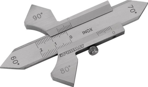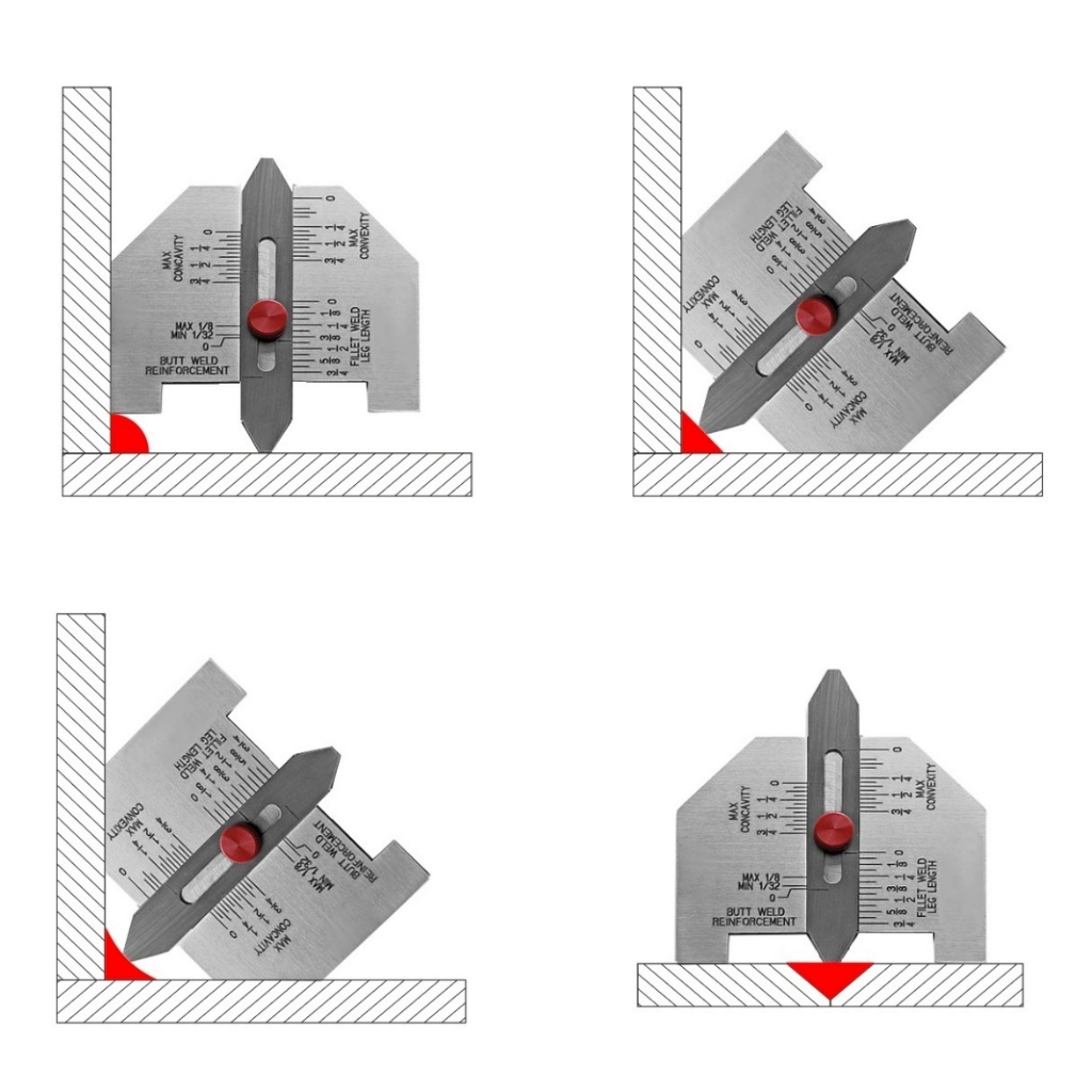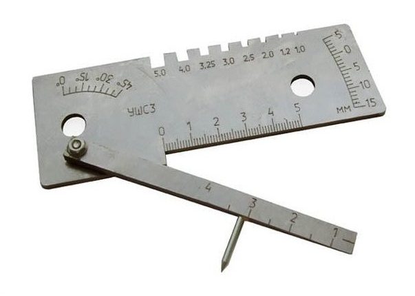 Univerzálnymi mierkami je možné hodnotiť viacero typov zvarov a ich rozmerov. Pomocou tejto mierky (obr. 1.16) je možné merať uhol skosenia, šírku koreňovej medzery, lineárne presadenie, prevýšenie zvaru, šírku zvaru, zápaly, alebo priemer elektród [13].