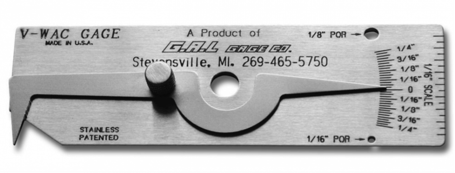 Je to jednoduchá mierka umožňujúca vykonávať niekoľko rôznych typov meraní a porovnávať chyby zvarov. Mierka je dodávaná so stupnicou v milimetroch alebo palcoch. Mierka V-Wac (obr. 1.11) meria: